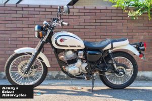 大人気のエストレヤのあとを継いだW230。PLAZAで新車で卸したレンタル上りの車両になります。なんといってもお買い得感の高さはその走行距離の少なさ。更にCR-1ガラスコーティング施工済み!新車の車両価格以下で乗り出せるのが魅力です。マイペースで淡々と何処までも走り続けてくれる安心感。そして最新テクノロジーABSも標準装備。タンク容量11Lながら、装備重量は143kgの軽量な車体も相まって60km/h、低地燃費、二人乗り、で48.4km/Lの高燃費も嬉しいです。初心者にも女性にもお手軽な1台になります。休みの日は即ツーリングに!乗れない日は磨いてるだけでも愉しくさせてくれるW230です