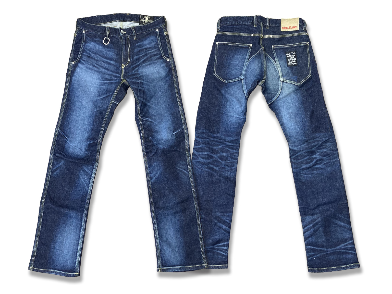 [FREE RIDE][SKULL FLIGHT/スカルフライト] ストレッチタイトストレート / ダメージインディゴ