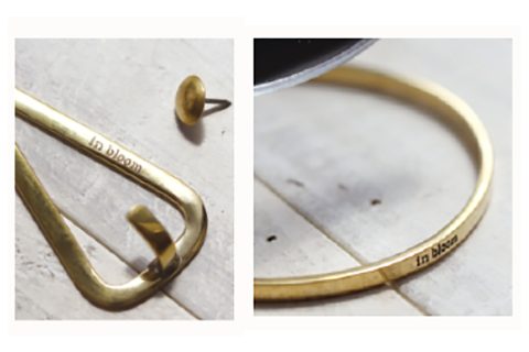 「in bloom」のロゴが刻印された真鍮のフックは、経年の変化で段々と深みが増していきます。