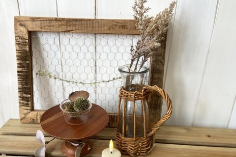 ただ置くだけで雰囲気あふれる、古材を使ったワイヤーフレーム。