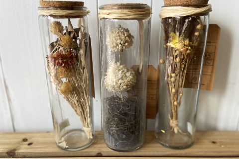 一輪挿しも、季節を感じるドライブーケもよく似合います。
