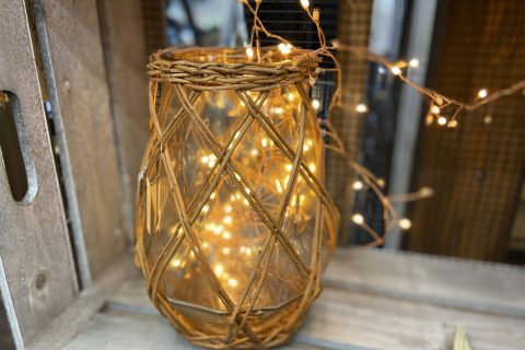 置きたい場所や飾たい場所に合わせて選べる、天然素材とガラスを組み合わせた藤巻フラワーベース。
