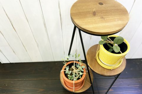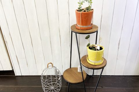 空間をより立体的にせてくれるスタンドに、グリーンを素敵に飾って楽しめます。