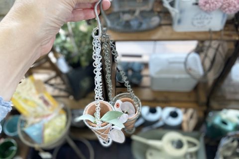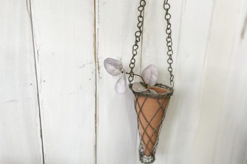 ちょっとしたスペースに吊り下げられる、テラコッタのミニプランター
